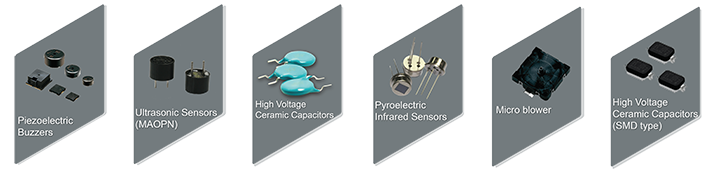 | Smart Home | 1.Piezoelectric Buzzers 2.Ultrasonic Sensors (MAOPN) 3.High Voltage Ceramic Capacitors 4.Pyroelectric Infrared Sensor 5.Micro blower 6.High Voltage Ceramic Capacitors (SMD type) | AS-05_03_Smart_Home.png | ダウンロード |
