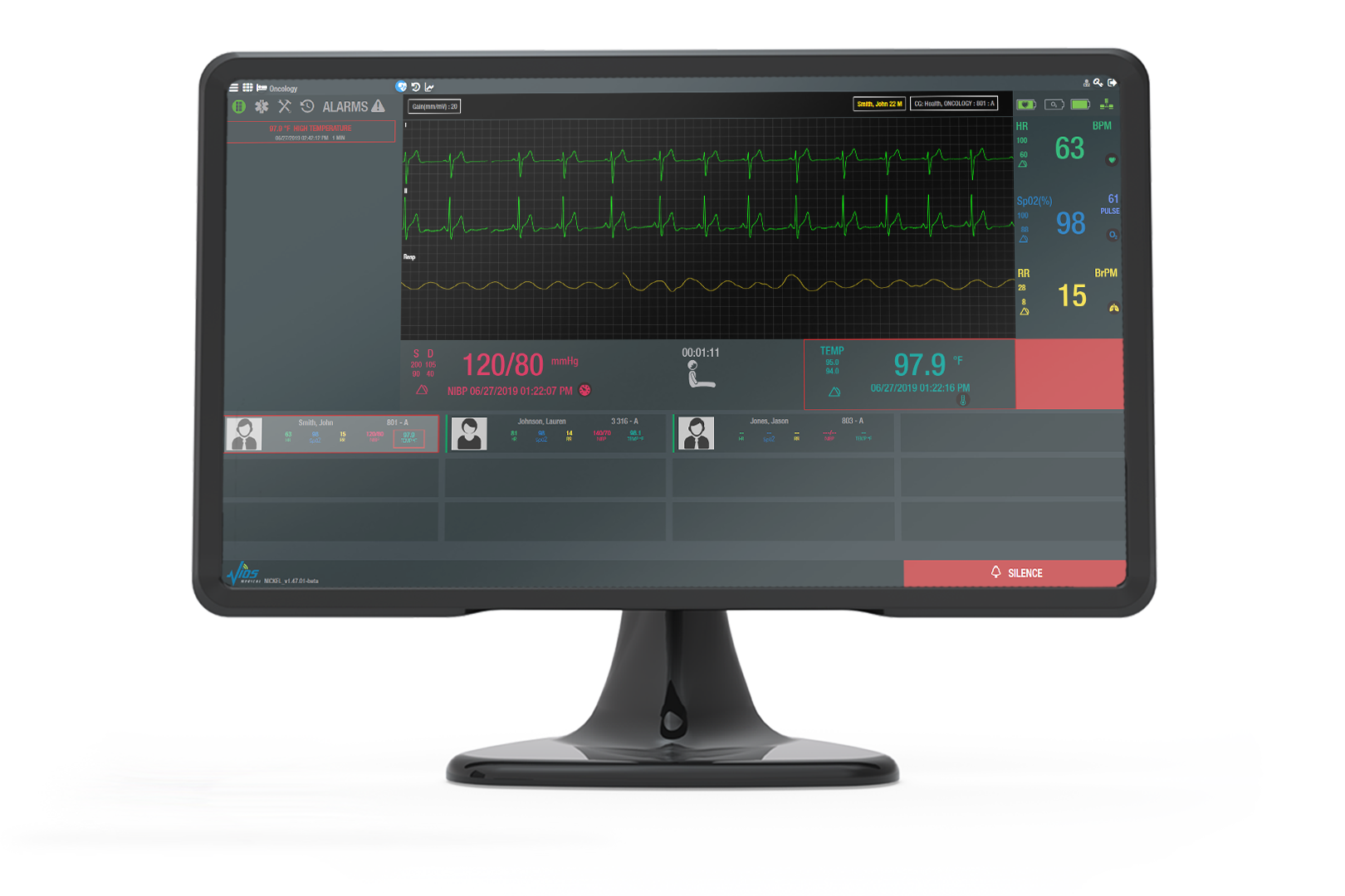 | Vios Central Station Monitor (CSM) Software | The Vios Central Station Monitor runs an FDA–cleared application that allows for remote viewing of all patients in a centralized dashboard. The CSM allows for monitoring of patients in various units spanning from low– to high–acuity environments. The CSM application can run on any computer, thereby allowing clinicians to monitor and manage patients wherever convenient. Additionally, the CSM software includes a Vitals and Waveform Review module, a Vitals Trending module, and generates ECG Waveform and Patient Summary Reports. | AS-52_vioscsm.png | ダウンロード |