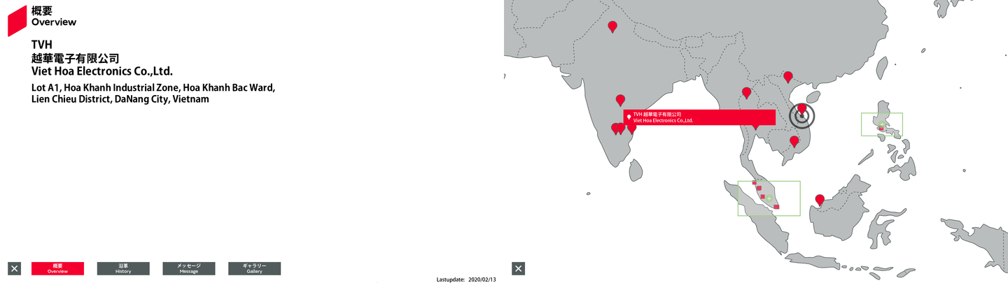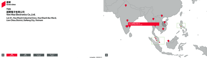 | 63 | 東南アジア | 16.083533 | 108.12883 | MMV-DN | Murata Manufacturing Vietnam Co., Ltd. | Lot A1, Hoa Khanh Industrial Zone, Hoa Khanh Bac Ward, Lien Chieu District, DaNang City, Vietnam | Inductor Coil Manufacturing | 2836 | Outline | History | Message | Gallery | Free0 英語 | Free1 英語 | Free2 英語 | 2025/03/21 |