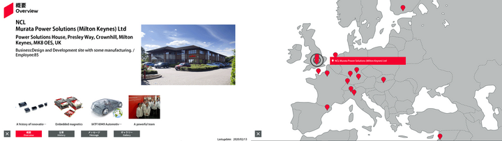 | 16 | ヨーロッパ | 52.028173 | -0.801222 | NCL | Murata Power Solutions (Milton Keynes) Ltd | Power Solutions House, Presley Way, Crownhill, Milton Keynes, MK8 OES, UK | Design and Development site with some manufacturing. | 85 | Outline | History | Message | Gallery | Free0 英語 | Free1 英語 | Free2 英語 | 2021/09/28 |
