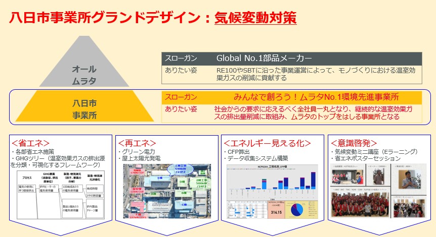 | Climate Change Measures | As climate change measures attract global attention, Murata has rapidly expanded its business scale in recent years, and the expectations from surrounding communities continue to rise. Each individual is committed to seriously addressing environmental issues and promoting activities that are sustainable and continuous | JP-04_GD_.JPG | ダウンロード |