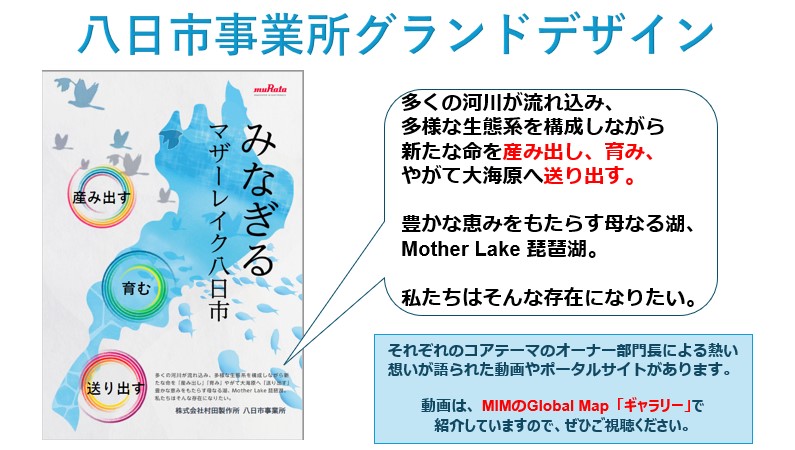 | 八日市事業所グランドデザイン | 2013年に八日市事業所はグランドデザイン「事業所23」を策定しました。その後2024年から「みなぎるマザーレイク八日市」を新たな八日市事業所のグランドデザインとして掲げています。 | JP-04.JPG | ダウンロード |