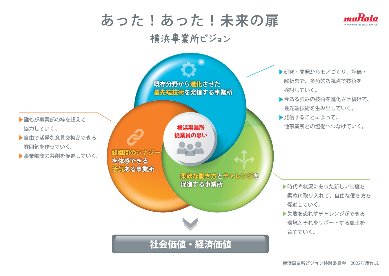 | YTC Vision | Since 2021, alongside the renovation work at the YTC , we have established the Vision Review Committee as a reform initiative focusing on employee awareness. We have completely revamped the vision that was formulated over 15 years ago. Through extensive discussions among members from various departments, we have developed the "YTC Vision," outlining how we want to work and how we intend to promote our business activities there in the future. We are currently engaged in activities to promote this new vision. | JP-06_YTC_VISION.png | ダウンロード |