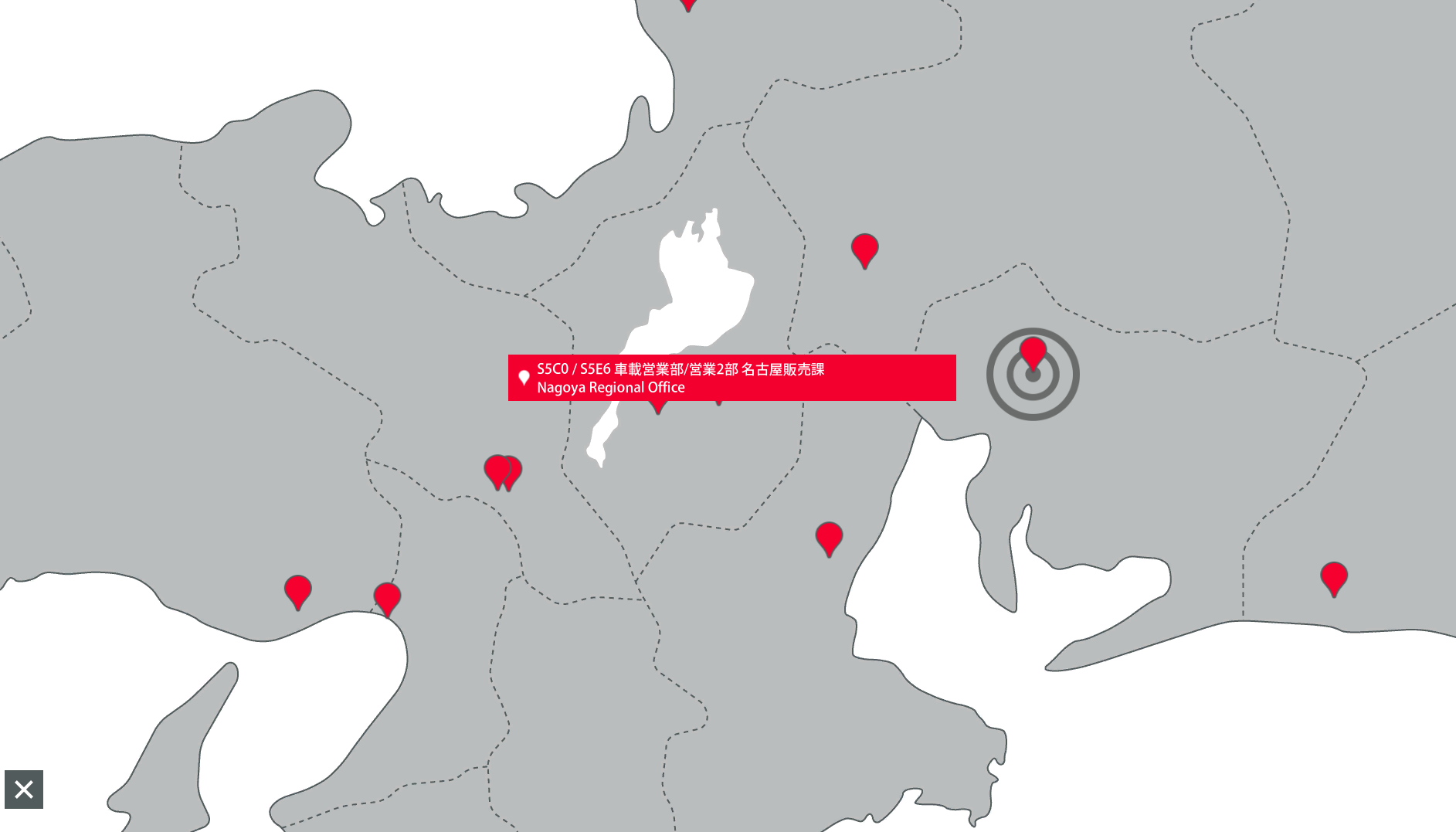 | 12 | 日本 | 35.16705 | 136.992896 | MMC | 車載営業部/営業2部 名古屋販売課 (名古屋営業所) | 愛知県名古屋市中区錦2丁目14番19号 名古屋伏見Kスクエア12F | 中部日本地区における販売活動 | 79 | 概要 | 沿革 | メッセージ | ギャラリー | Free0 日本語 | Free1 日本語 | Free2 日本語 | 2025/09/26 |