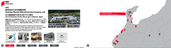 | 23 | 日本 | 37.2281736 | 136.9006651 | ADC | 株式会社穴水村田製作所 | 石川県鳳珠郡穴水町字大町チの53番地 | 穴水村田製作所では、インダクタ (コイル) およびノイズ対策部品/EMI除去フィルタを生産しています。国内のみならず海外からも幅広いニーズがあり、商品を全世界に提供しています。 | 258 | 概要 | 沿革 | メッセージ | ギャラリー | MIM確認用シート | Free1 日本語 | Free2 日本語 | 2025/10/14 |