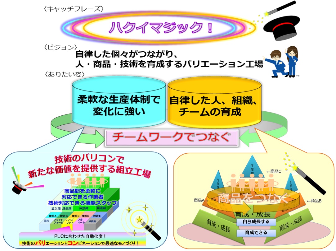 | NDK Grand Design | We drew the ideal form of our site 10 years later and formulated it as Hakui Murata's Grand Design. We are promoting activities under the slogan “A factory where people, products and technologies can be nurtured by connecting autonomous individuals and responding to various requirements”. | JP-27_GD.jpg | ダウンロード |