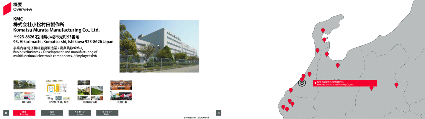 29 日本 36.402284 136.457823 KMC 株式会社小松村田製作所  〒923-8626 石川県小松市光町93番地 電子機械器具製造業 728 概要 沿革 メッセージ ギャラリー MIM確認用シート Free1 日本語 Free2 日本語 2025/10/14