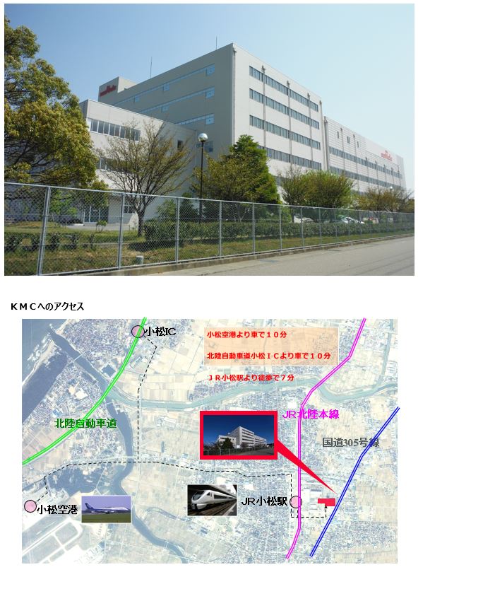 | 会社紹介 | ●業務内容 小松村田製作所は、国内外に約100社あるムラタグループのなかで、複合機能電子部品「モジュール製品」の開発・生産拠点として位置づけられています。「モジュール化技術」を駆使し、様々なエレクトロニクス製品の主要回路部品を開発・生産し、世界のセットメーカーに供給しています。 ●ビジョン あらゆる産業をターゲットに モジュール製品&ソリューションを提供する。 ICをはじめ様々な電子部品を集積し、複合機能電子部品をつくり出すモジュール化技術。この技術の可能性を追求していくことが、小松村田製作所のミッションです。 小松村田製作所はこれまで、AV機器や携帯電話向けのモジュール製品を開発。近年では、スマートフォンや自動車、医療機器などの分野へとその市場を広げてきました。 2020年の5G(第5世代移動通信システム)実用化をはじめ、これからのスマート社会にとって高速大容量の無線通信は欠かすことのできない技術です。こうした潮流の中、無線電波の送受信や情報処理、センサなどの複合機能を一つのチップに内蔵したモジュール製品へのニーズは、社会のあらゆる分野で日々高まっています。 モジュール化技術による新しい製品とソリューションを、あらゆる産業に向けて提供する。 加速度的に進化する時代の中で、小松村田製作所の存在はますますその必要性を増しています。 ●KMCのロケーション・アクセス JR小松駅まで徒歩7分、2024年春に北陸新幹線開業。小松空港、北陸自動車道(E8)小松ICまで、ともに自動車で10分と、非常にアクセスのよい地方都市です。 | JP-29_1-1SYAOKU-ACCESS.JPG | ダウンロード |