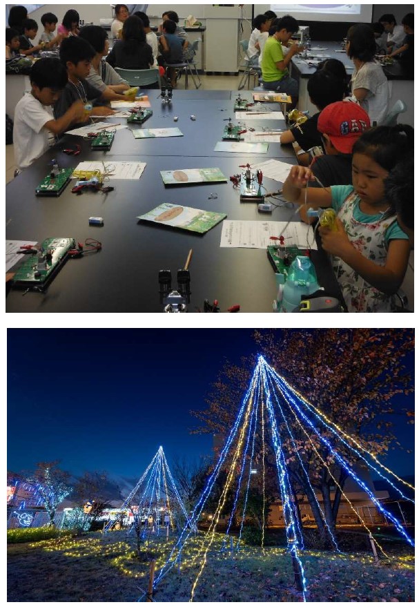 | 地域貢献活動 | ■理科教室 社内で、あるいは隣接する「サイエンスヒルズこまつ」と連携し、地域の人々や子供たちを対象に、ミクロ観察会やムラタセイサク君実演などの「理科教室」を開催しています。 ■バラ園一般開放 「緑豊かな市街地の工場」をスローガンに、敷地内にバラ園を一般開放し市民との交流を図るほか、小松市の市木・クロマツを植えるなどの構内緑化を推進。CO2削減対策のひとつとして「緑のカーテン」作りなども行っています。 また冬場には、イルミネーションを設置し 地域の方々にも楽しんでもらっています。 ■近隣保育園との交流 近隣の幼稚園・こども園に出向き、子供たちと一緒にグリーンカーテン作りなどを行っています。子供たちに目的を説明し、楽しんで体験してもらっています。 ■伝統文化支援 小松市の伝統文化である子供歌舞伎に支援を行っています。 | 598739c562d7fec5ce8ab2de2fd8c273.jpg | ダウンロード |
