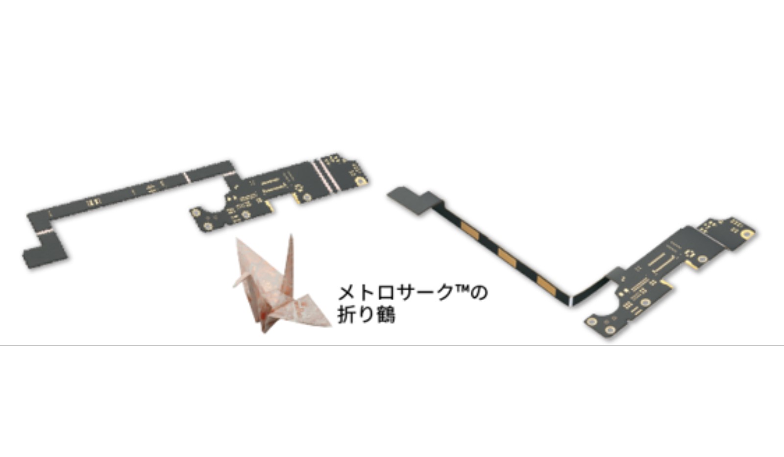 MetroCircTM is a multi–layer resin substrate made by stacking multiple layers of resin sheets and copper foil sheets using LCP film. It has excellent high–frequency characteristics and does not require an adhesive layer, making it thin and capable of complex bending. With various circuit designs, it is possible to play not only a role as a substrate but also a function as a component that plays a role as a transmission line and a function with built–in coil, etc. These features contribute to the miniaturization, thinning, and performance improvement of smartphones and wearables. |