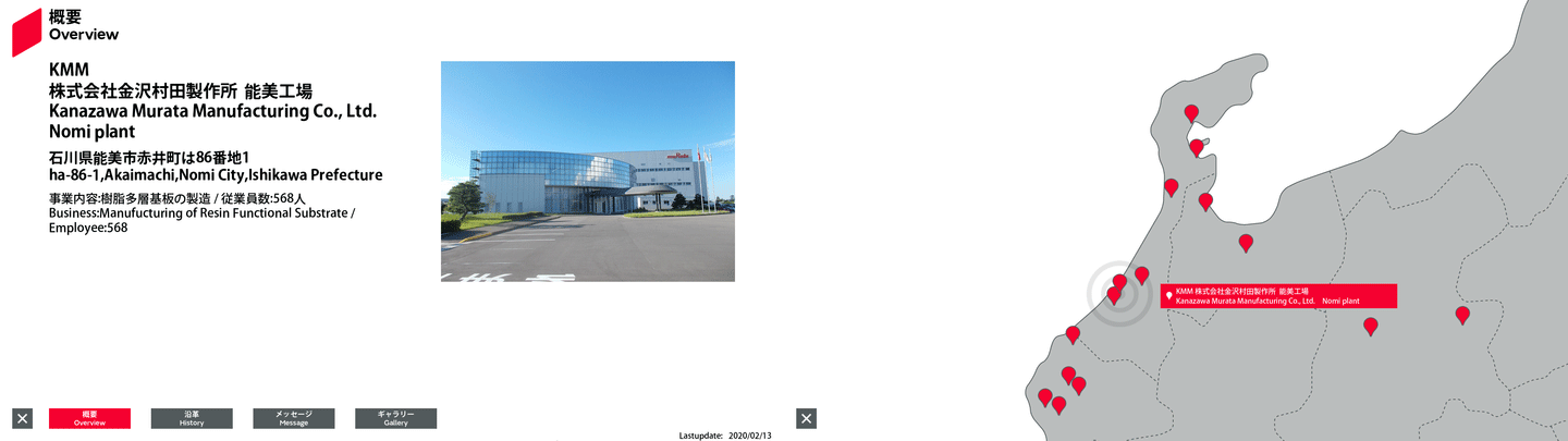 | 33 | 日本 | 36.4592672 | 136.4905831 | KMM | 株式会社金沢村田製作所 能美工場 | 石川県能美市赤井町は86番地1 | 樹脂多層基板の製造 | 632 | 概要 | 沿革 | メッセージ | ギャラリー | MIM確認用シート | Free1 日本語 | Free2 日本語 | 2025/10/14 |