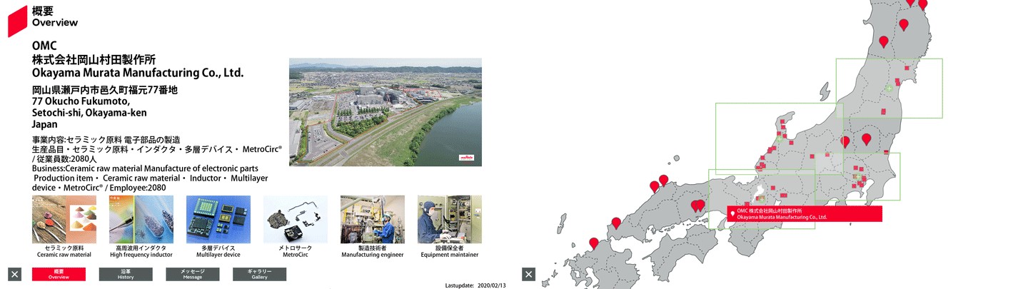 | 34 | 日本 | 34.6794384 | 134.0799513 | OMC | 株式会社岡山村田製作所 | 岡山県瀬戸内市邑久町福元77番地 | セラミック原料 電子部品の製造 生産品目・セラミック原料・インダクタ・RFモジュール・LCフィルタ | 2195 | 概要 | 沿革 | メッセージ | ギャラリー | MIM確認用シート | Free1 日本語 | Free2 日本語 | 2025/10/14 |