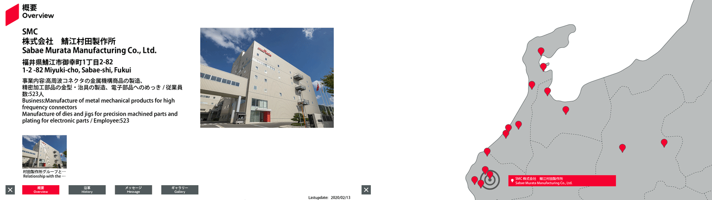 | 35 | 日本 | 35.989853 | 136.256457 | SMC | 株式会社鯖江村田製作所 | 福井県鯖江市御幸町1丁目2-82 | 高周波コネクタの金属機構商品の製造、 精密加工部品の金型・治具の製造、電子部品へのめっき | 794 | 概要 | 沿革 | メッセージ | ギャラリー | MIM確認用シート | Free1 日本語 | Free2 日本語 | 2025/10/14 |