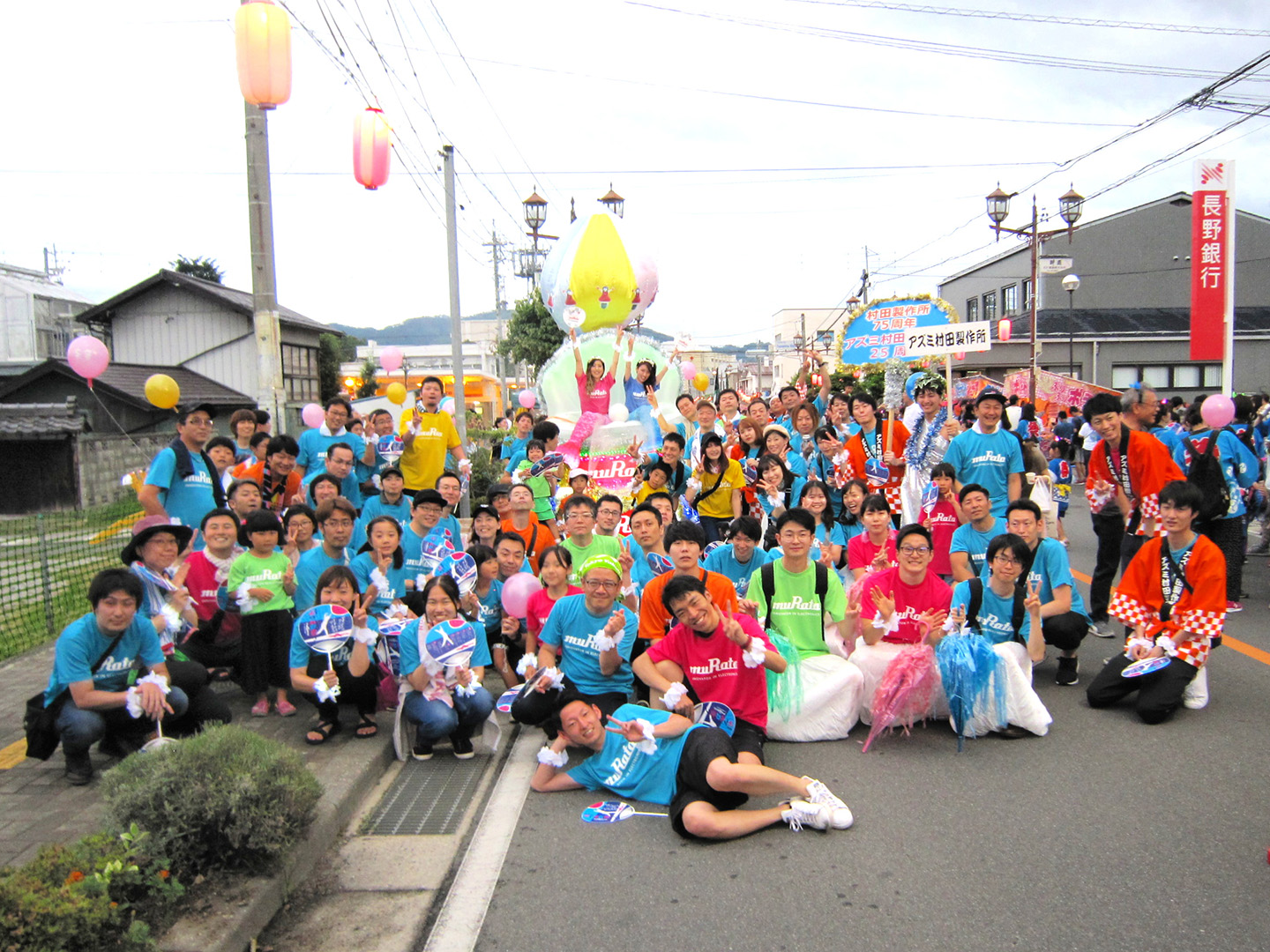 | Azumino Fwstival | We participate in the Azumino Festival organized by Azumino City. For several months, we create floats, practice dance, then join it. Luxurious floats and Murata T–shirts make the festival lively. | JP-38_AMC46MATSURI.JPG | ダウンロード |