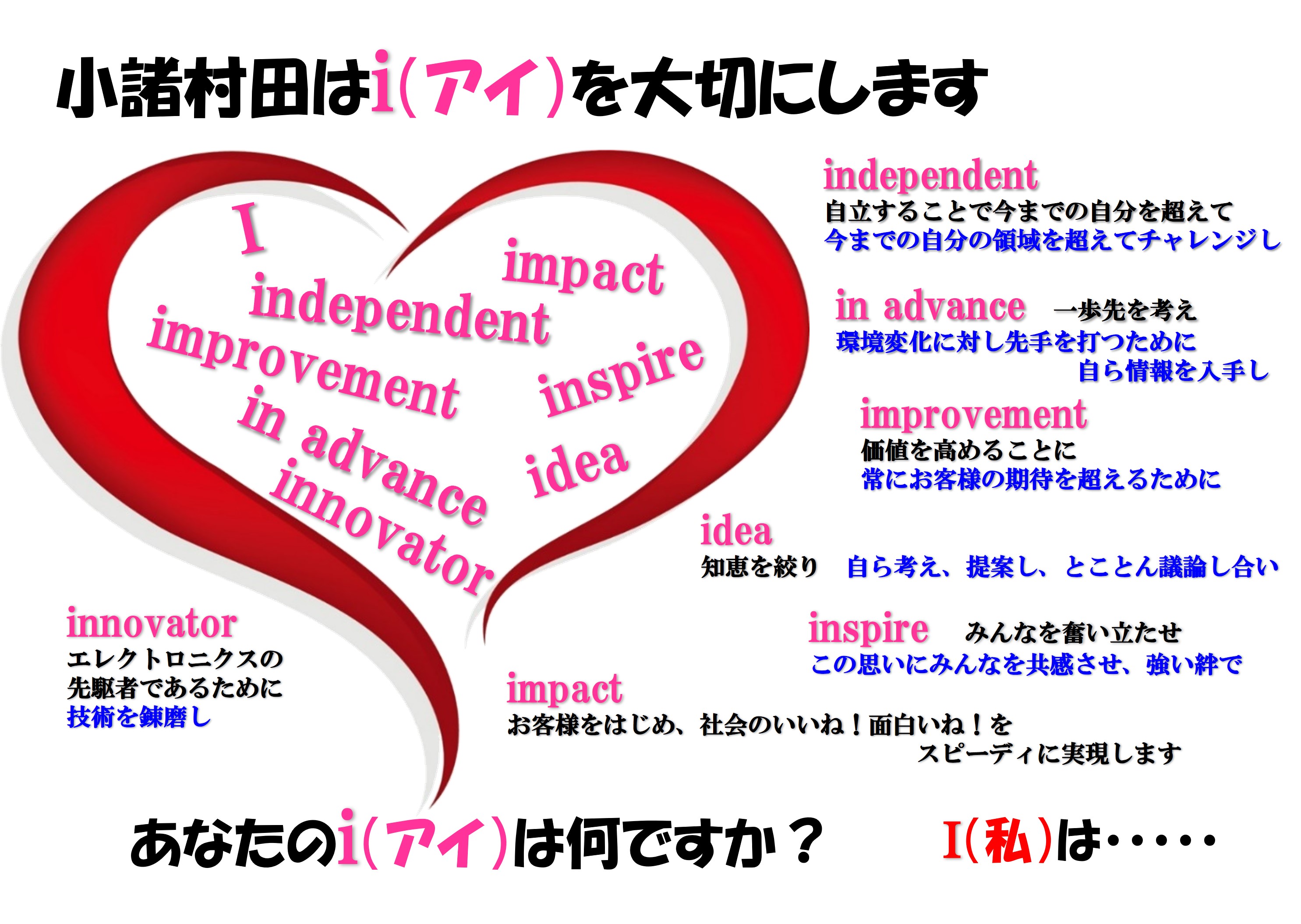 | vision | "Komoro Murata values i " our vision is to be aware of the six keywords of independent, in advance, inspire, inprovement, idea, and impact, and we value our proactive thinking and actions. | JP-41_kom_vision_202508.jpg | ダウンロード |