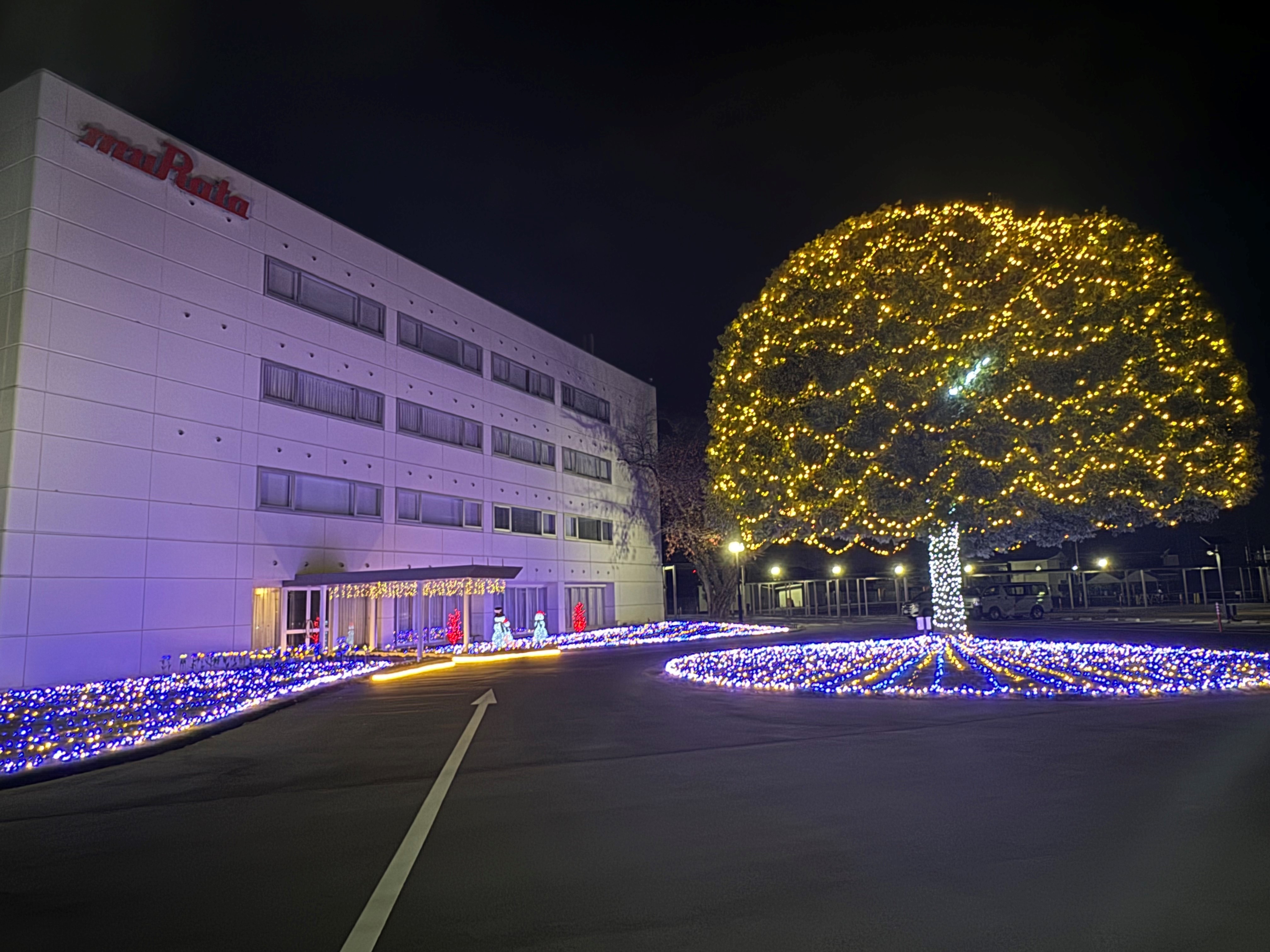 | TOKイルミネーション | 地域貢献活動の一環として、クリスマスシーズンには毎年恒例で正面玄関エリアにイルミネーションを点灯しています。中でも、埼玉村田製作所のシンボルツリーである高さ10メートルのシラカシの木には流れ星をイメージしたイルミネーションが施されており、その美しさは圧巻です。地域の皆さまにフォトスポットとしてご好評をいただいております。さらに、従業員が会社紹介を行うことで、「埼玉村田製作所のファンづくり」を掲げた地域貢献活動に取り組んでいます。 | JP-46_illumination-1.jpg | ダウンロード |