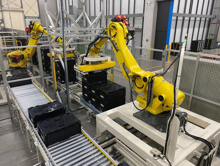 | デパレタイザー | デパレタイザーは、LCパレットに積まれた各バケットを1つずつ荷降ろしして搬送コンベアに運ぶロボットです。この作業を人が行う場合、東京ロジスティクスセンターの出荷規模では1日に20人が必要な上、各バケットが22kgと重いため腰痛などの労災リスクもあります。この設備を1台導入することで、省人化と労災防止を実現しています。 | JP-56_TLC09.JPG | ダウンロード |
