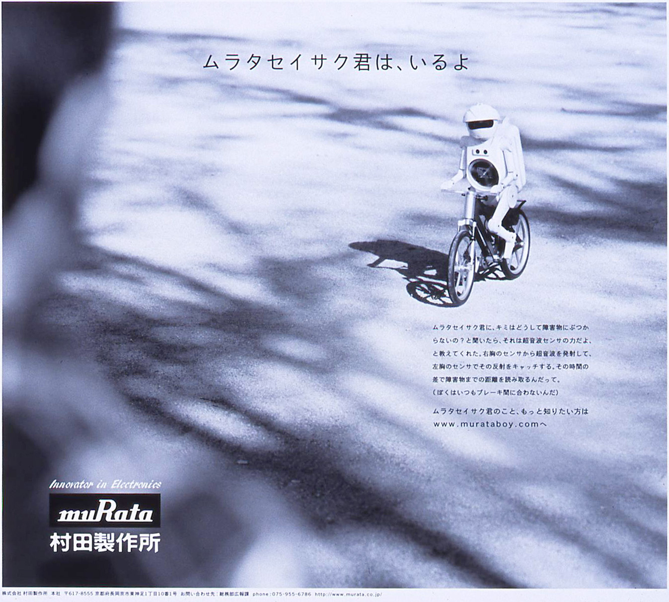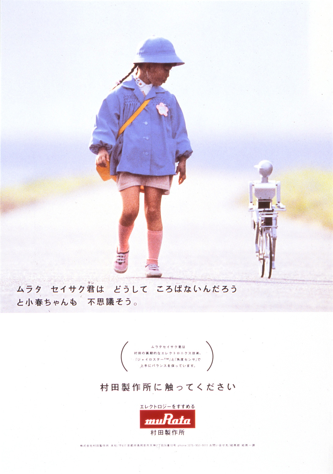 1992年度・夏 《请了解一下村田制作所》 村田的知名度因上一年的广告有了大幅提高,本次广告以提高认知度为目标,起用了第一代村田顽童,通过村田机器人宣传村田是一家运用先进技术为社会做贡献的公司。 P01_.jpg ダウンロード