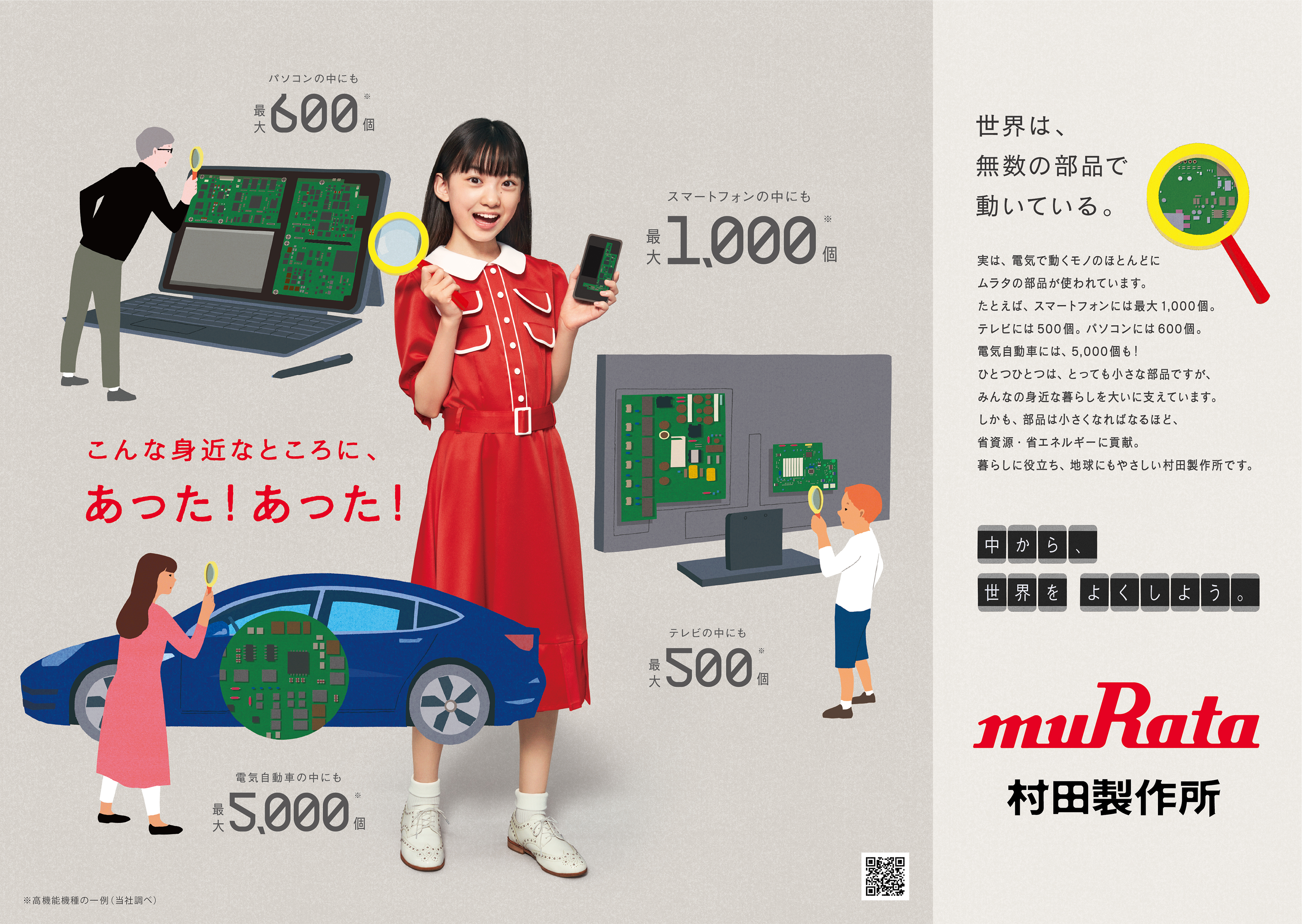 高性能的电子元件支撑了电子设备的进化,而高性能的电子元件是由充满朝气和活力的员工创造出来的,村田在广告中传达了这样的信息。
