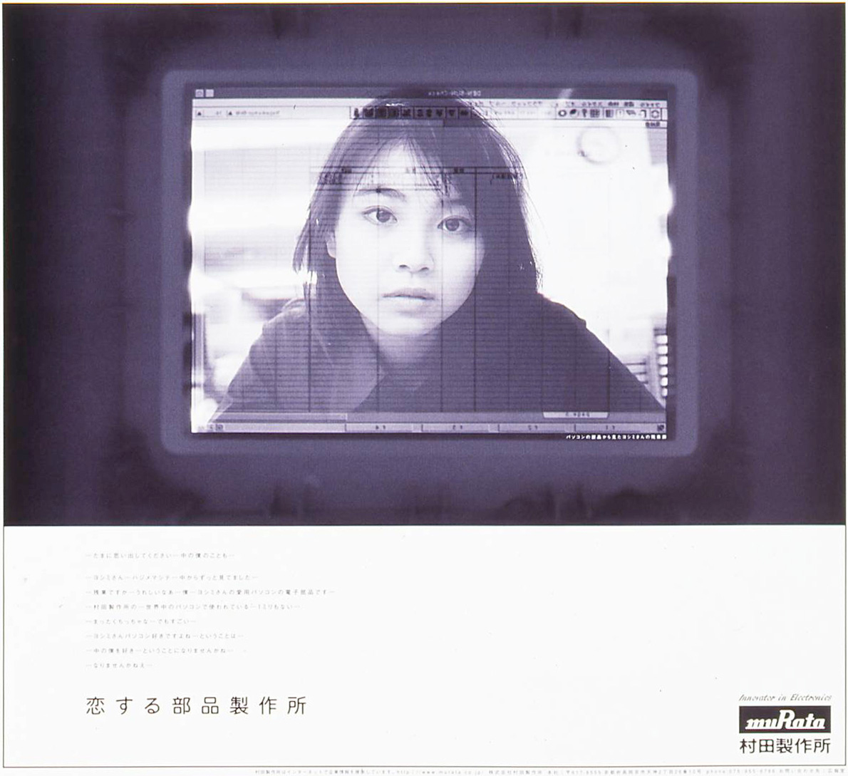1998年度 《恋爱的元件制作所》 以“恋爱的元件制作所”为宣传词,将场景设定为元件通过电子设备的液晶屏向使用者搭话。在观众意识不到电子设备的基础上展现观众和村田的关系,宣传村田是“一直关注着你的、努力工作的电子元件制造商”。 ad_06_1999.jpg ダウンロード