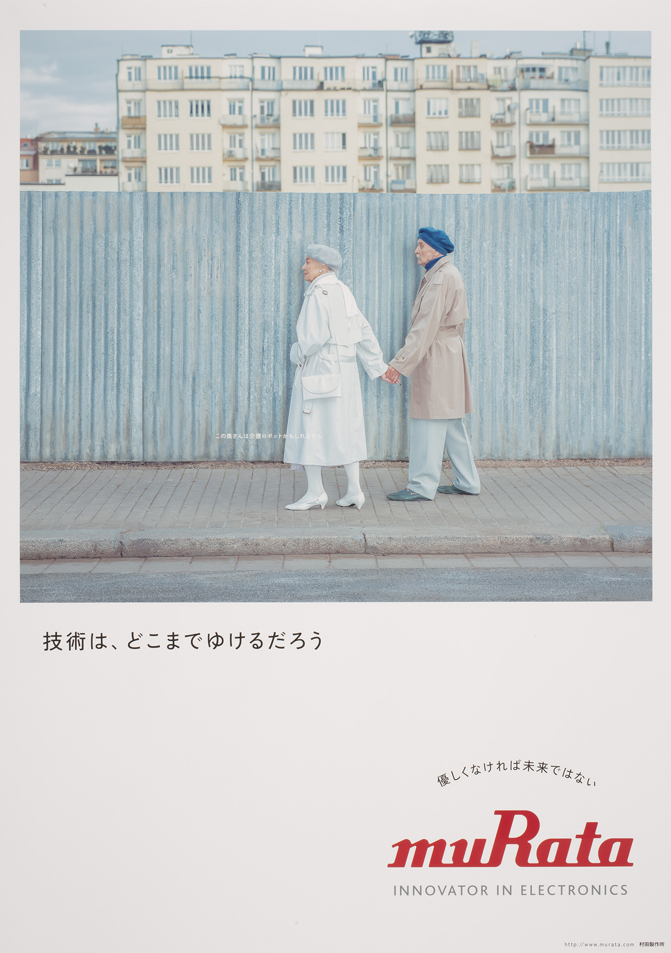 面对发展迅速的技术,广告用“没有真诚温柔就没有未来”展现了村田理想中的技术发展。